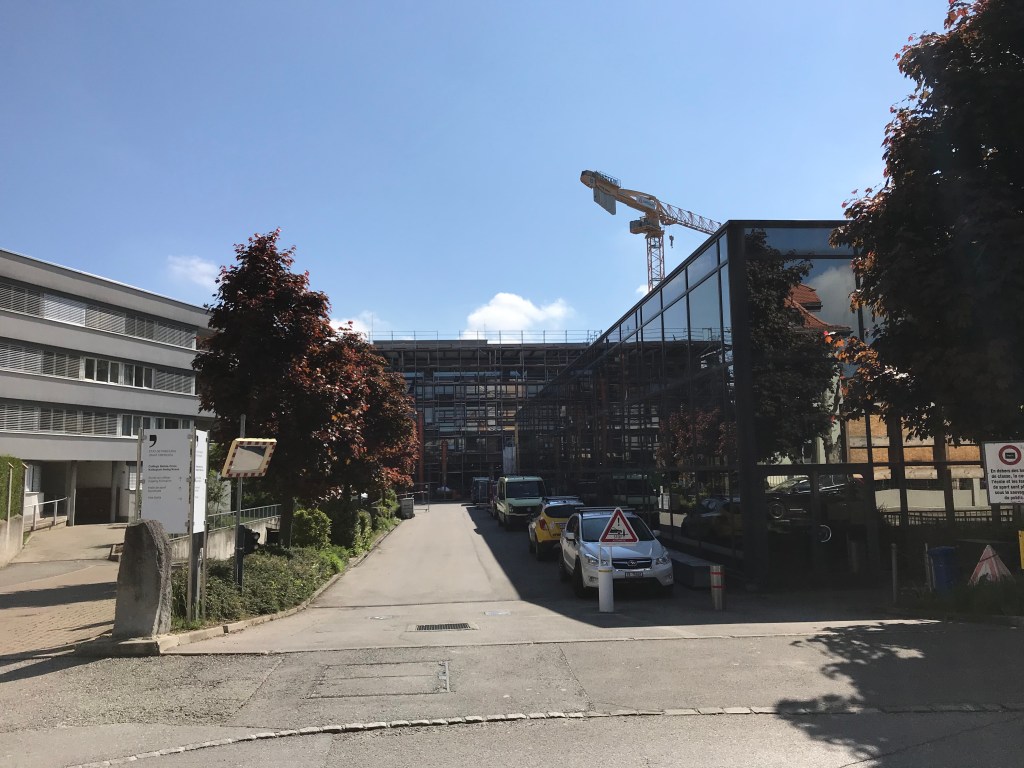 Un grillage : ivaTech, chantier, accès interdit au personnel non autorisé. Rue de la poudrière. Odeur de chien mouillé. Essorer le pull. Un clochard, vraiment ? Un clochard à la Vignettaz ? Des briques, un dévaloir de plastique jaune, un échafaudage nommé Bugnon, une grue d’un jaune différent. La haie, c’est ? Une charmille ? Un mur. Charmille-mur-grillage. Ici, c’est la Vignettaz.