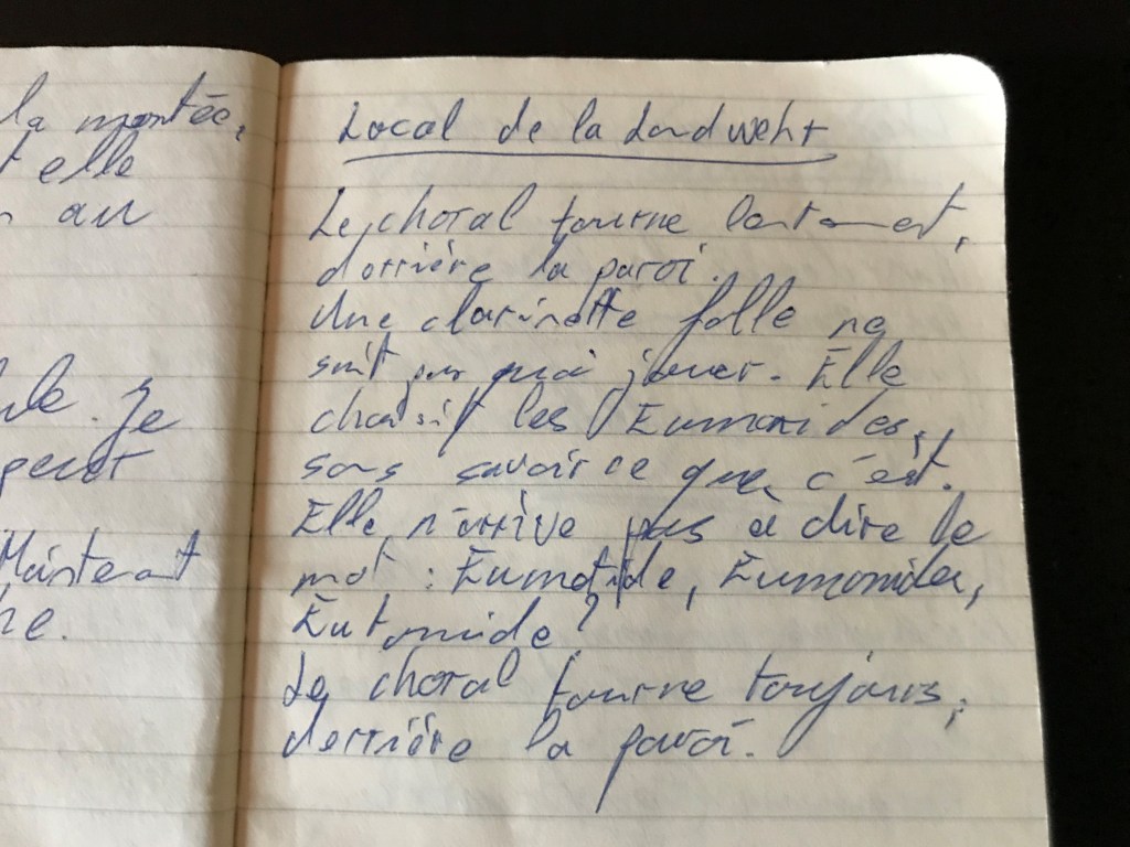 Tous les vendredis à quinze heures. Quelques notes inscrites dans le carnet noir :