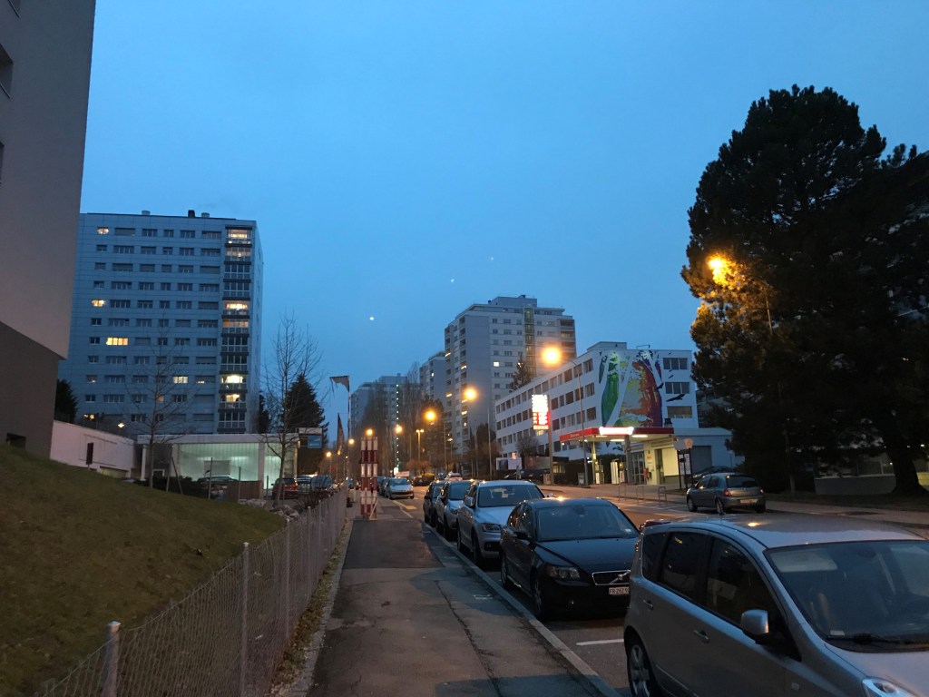Beaumont : le quartier où l’on s’emmerde ! Joli slogan. Beaumont : Vignettaz au rabais ! Des rues bien rectilignes, des trottoirs vides, des boîtes à chaussure où il n’est permis de danser dans votre cuisine que des danses sans tétines. Beaumont : des carrefours bien carrés, avec des jolies lignes blanches – pas de celles qu’on sniffe, même au souper des Rois de la Landwehr on ne se permettrait pas de telles dérives – des jolies lignes blanches sur le bitume bien grisâtre, et de temps en temps, pour animer le quartier endormi, des travaux, un trou qu’on creuse et qu’on rebouche, des gens aux fenêtres parce qu’il se passe quelque chose, des soupirs quand c’est déjà terminé, des fenêtres qu’on referme, des télévisions qu’on rallume, des corps qui s’avachissent.